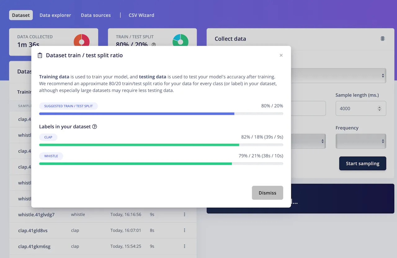 - Add a Label name for the sample you are about to collect. I am collecting clap and whistle sounds therefore I will use clap and whistle as labels.