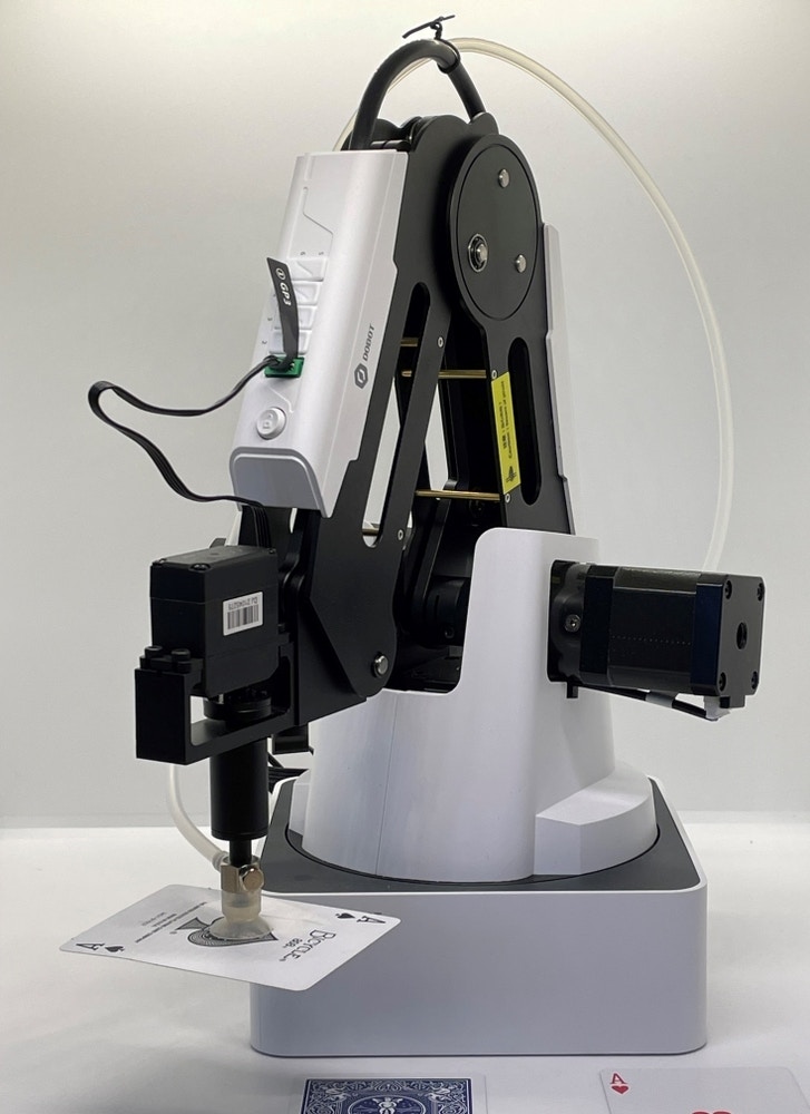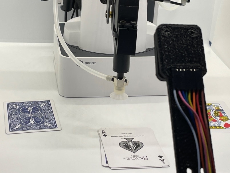 In this tutorial you will learn how you can sort both poker cards and solid waste using a real robot arm and TinyML (Tiny Machine Learning) running on a development board officially supported by Edge Impulse, namely the SiLabs xG24 Development Kit and Arducam. In Part 1 you learned how to classify the playing cards themselves according to their colour, and so this tutorial will focus more on interpreting and utilising the signals provided by the xG24 board to control the robot. It is thus recommended to at least browse through Part 1 before reading Part 2. Hardware used in this tutorial is the aforementioned SiLabs xG24 Dev board as well as the Dobot Magician robot arm. However, any other Python-programmable robot arm can most probably be adapted to work according to the steps in this tutorial.