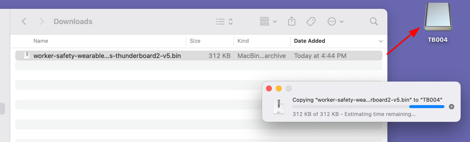 file will be automatically generated and downloaded. You need to drag and drop it to the Thunderboard Sense 2 device drive.