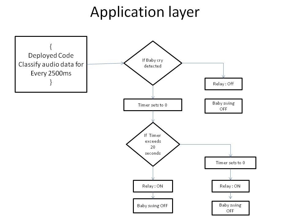 In the application code, I wrote the logic to activate a relay which is connected to the motor in the baby swing rocker. The below flowchart explains the logic of the application code. Also, I have added my application code in below GitHub link, which you can directly copy and paste into your Arduino IDE.