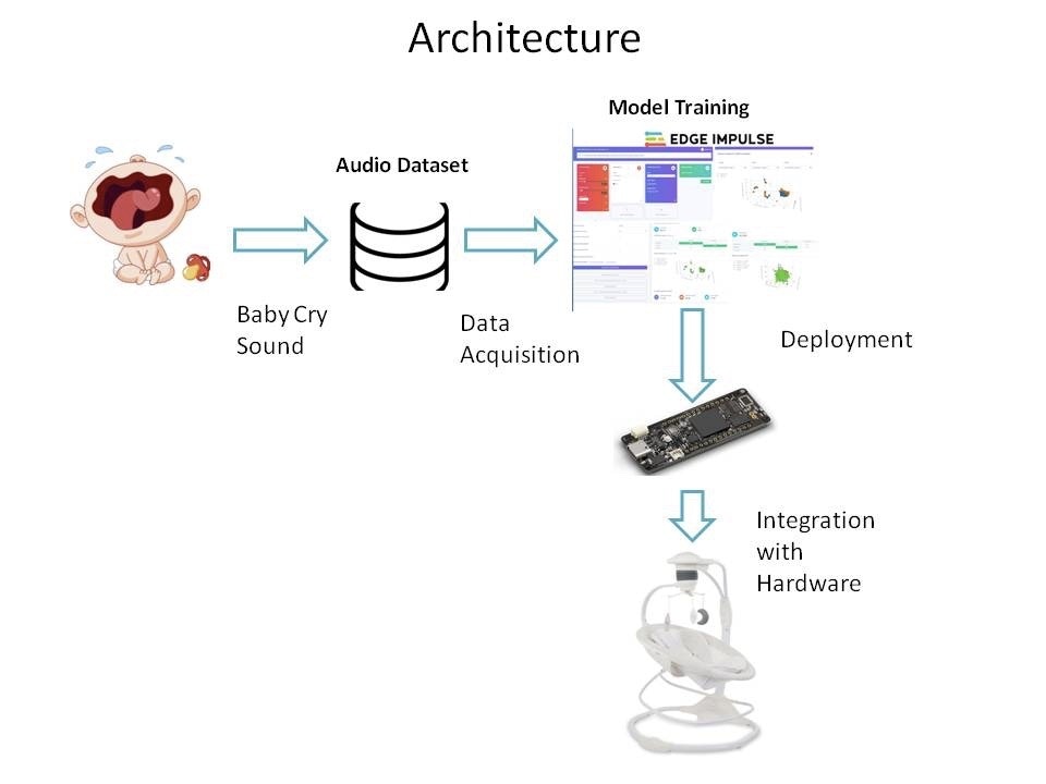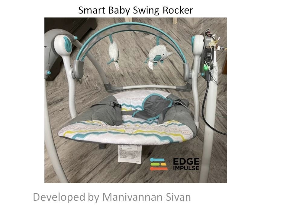 On a typical baby swing rocker only a manual ON/OFF switch, or a swing timer option function can be chosen. But when a baby starts to cry in the middle of the night, the baby swing rocker is normally in the “Off” position, so it cannot calm the baby.TinyML Solution