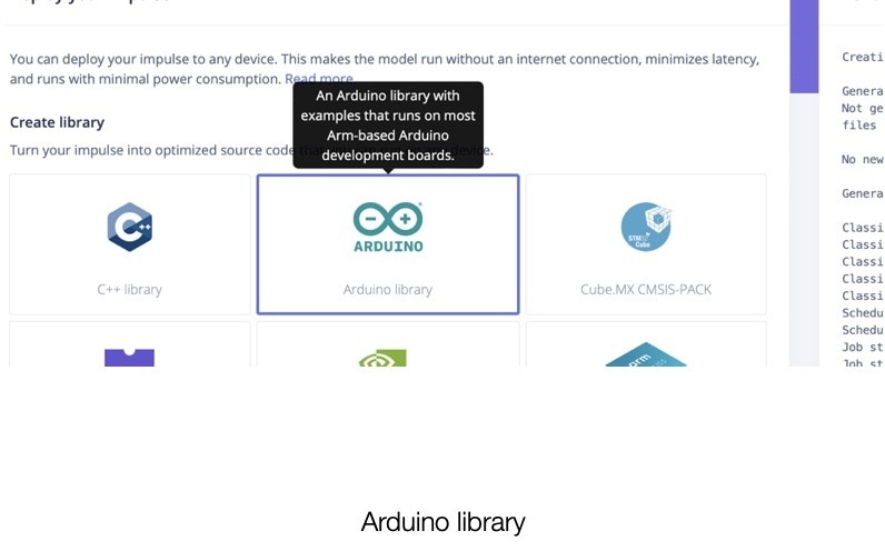 So, we click the Create Library section in the Studio and select Arduino, then download the source code.
