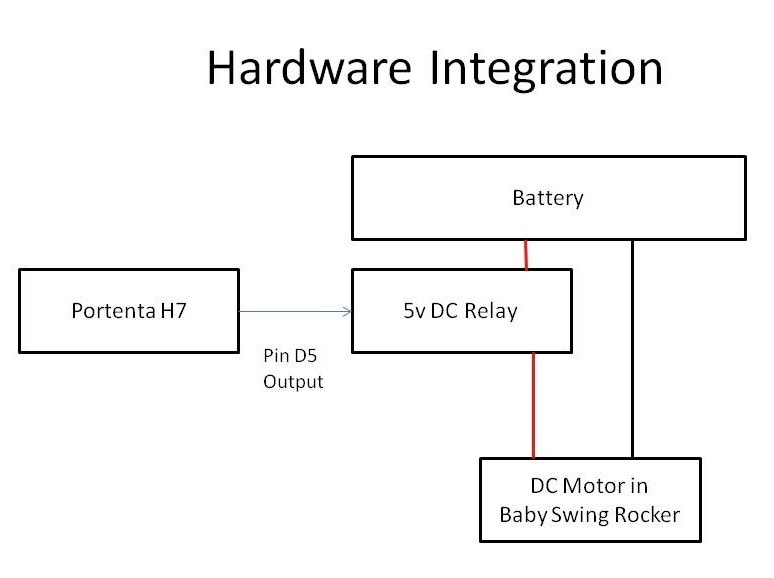 The above step will tell us whether the model is able to run smoothly on real hardware. After this step, now comes the real challenge! We need to integrate the Portenta H7 into the baby swing rocker!