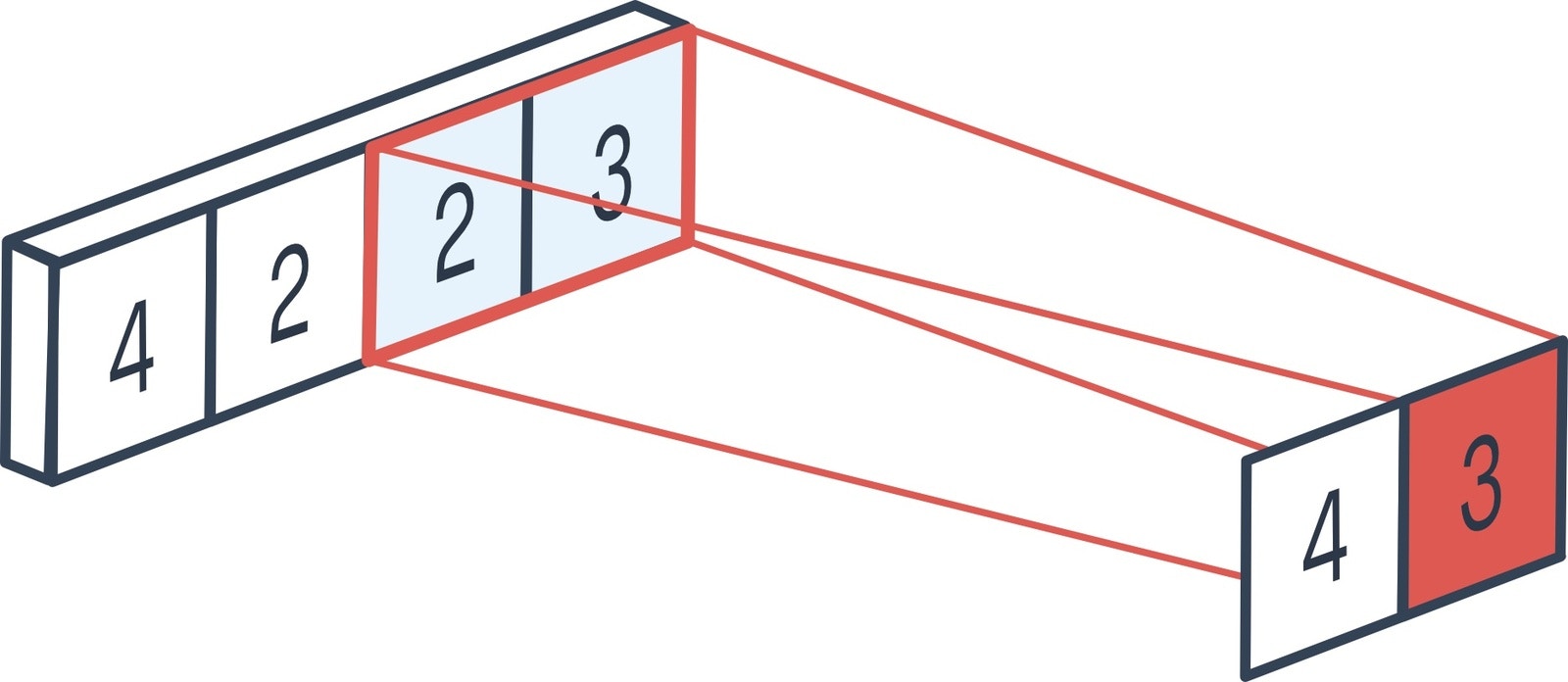 The 1D max pooling block moves a pool (window) of a set size over the incoming data with a set stride, computing the maximum in each specific window. The below diagram demonstrates the max pooling technique in 1D input data. In our network, the max pooling is configured asMaxPooling1D(pool_size=2, strides=2, padding='same'). This means the pool size is 2, where it takes 2 indices values and outputs the maximum value in that. And the stride length is 2, so it moves the pool layer twice in one direction.