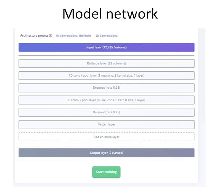 I have used a sequential neural network layer. The input data in 2 Dimensions is reshaped into 1 Dimension using a reshape layer. Then a 1 Dimensional convolution layer with Max pooling is used.1D Convolution Layer