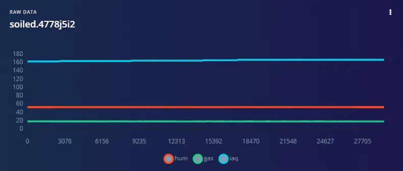 A dirty diaper has a much higher IAQ reading. The gas reading decreases as well.