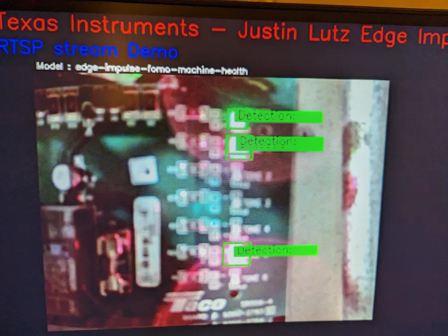 With the release of the Edge Impulse TIDL-RT for PSDK v8.05, I was now able to load the Edge Impulse model and see the RTSP stream without the application crashing. However, I was seeing HUNDREDS of detections. With the help of the Edge Impulse SMEs, I learned that there is a difference between the image input range of the Edge Impulse SDK (0…1) and the YoloX input range (0…255). I therefore had to scale the image input to 1/255 to feed into the Edge Impulse SDK. After a couple hours of searching, I found a variable in the model’sparams.yaml file that can scale the input:
