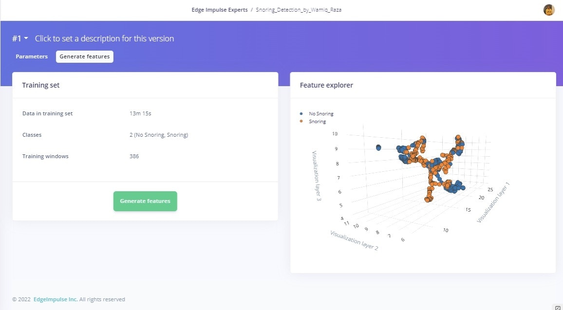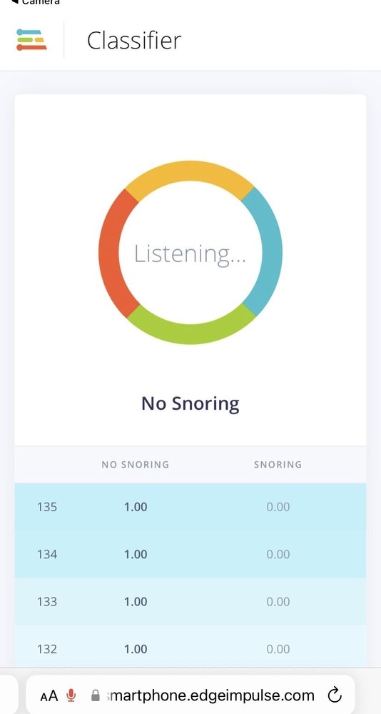 Snoring, a type of sleep disordered breathing, disrupts sleep quality and quantity for both the snorer and, frequently, the person who sleeps with the snorer. Snoring-related sleep deprivation can cause serious physical, emotional, and financial difficulties. Snoring not only disrupts the snorer’s sleep, but it can also cause anger between spouses! About 40% of adult males and 24% of adult women snore on a regular basis. Snoring begins when the muscles around the throat relax during sleeping. This narrows the airway, causing vibrations that result in snoring. Snoring is more common when a person sleeps on their back. Sleeping on your side is a natural remedy for snoring. Sleeping on your side rather than your back is a simple and natural treatment for snoring. In this project, a deep learning model for snoring detection is designed to be implemented on a smart phone using the Edge Impulse API, and the model may be put on other embedded systems to detect snoring automatically. A smart phone is linked to the listener module by home Wi-Fi or mobile data to log snoring incidents with timestamps, and the data may be shared to a physician for treatment and monitoring of disorders such as sleep apnea.Getting started
