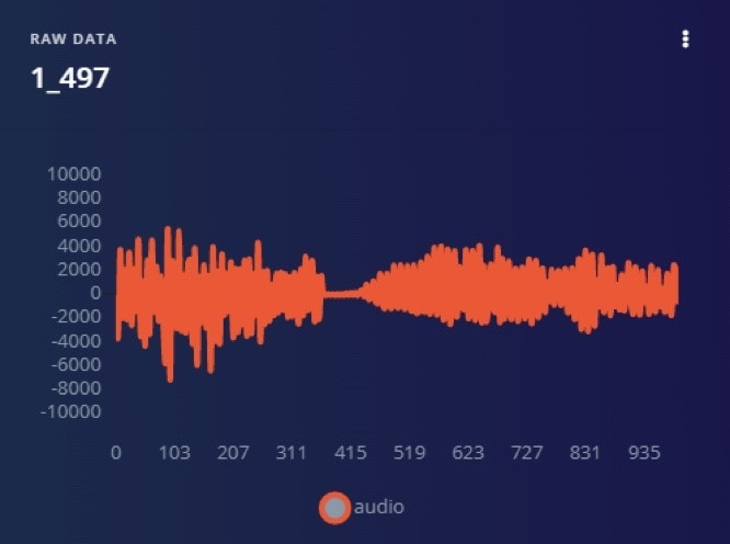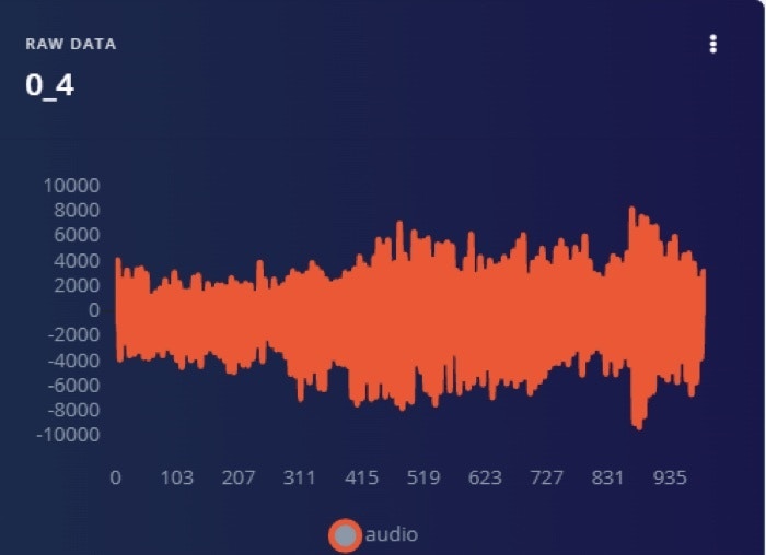 Next, we will select signal processing and machine learning blocks, on the Create impulse page. The impulse will start out blank, with Raw data and Output feature blocks. Leave the default settings of a 1000 ms Window size and 1000 ms Window increase as shown in Figure 4. This means our audio data will be processed 1 second at a time, starting each 1 second. Using a small window saves memory on the embedded device.