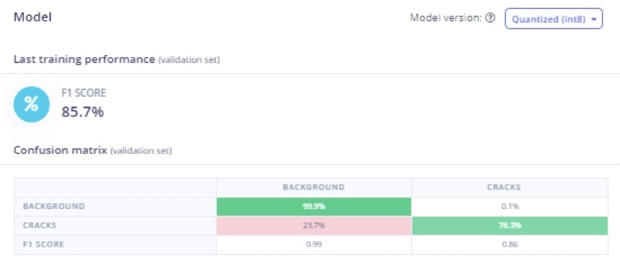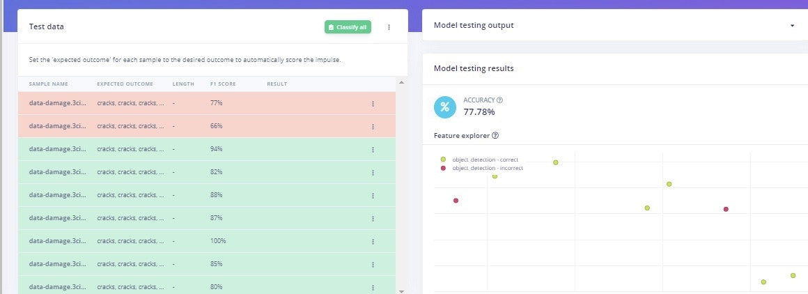 In Model testing, the model is able to identify cracks in solar panel images. In two of the testing data, it did miss identifying some cracks in the panels. This is normally due to lighting differences and camera angle, but it performs decently with 77.8% accuracy in Model testing.