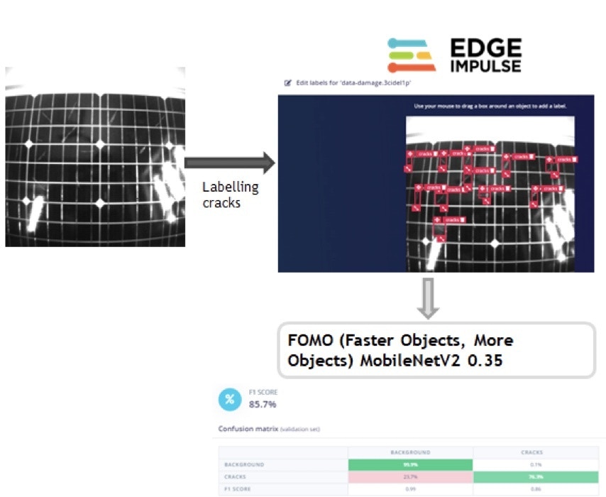 For this prototype development, I have used a FOMO-based object detection model to detect the cracks in the solar panel. The below diagram explains the overview of the model development. The major steps that need to be followed for the model development are:- Data Acquisition