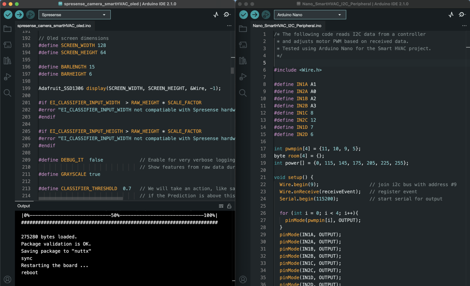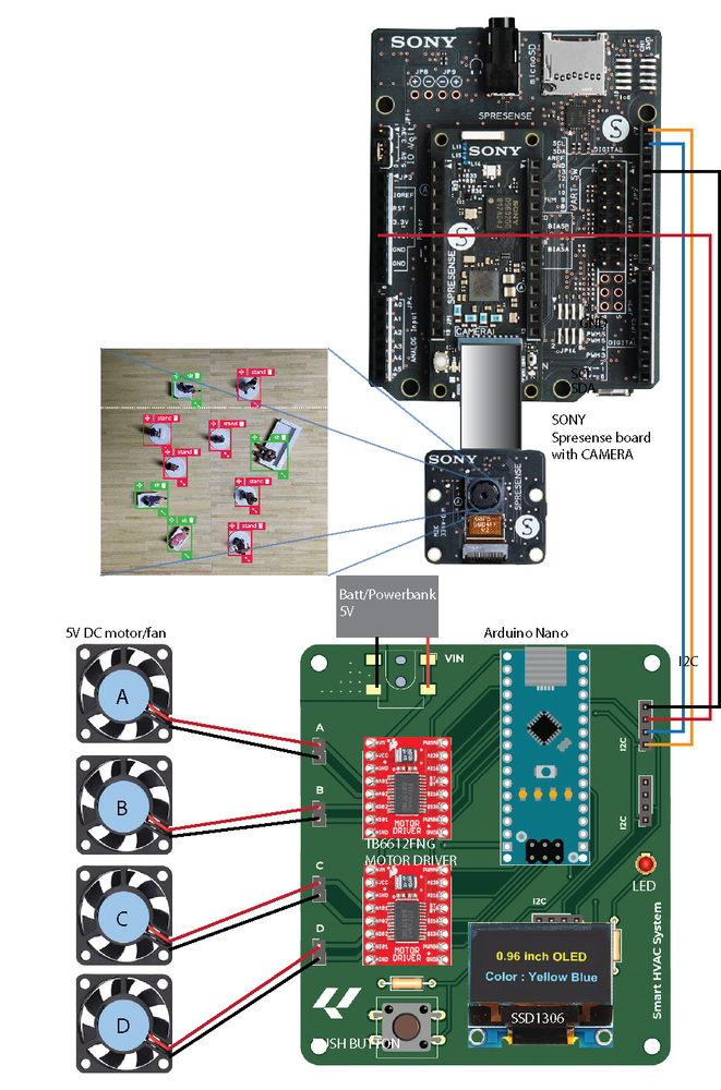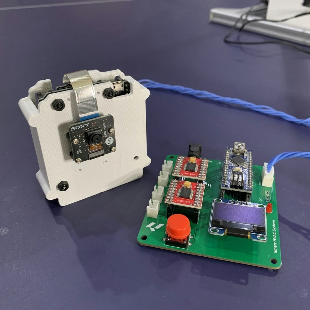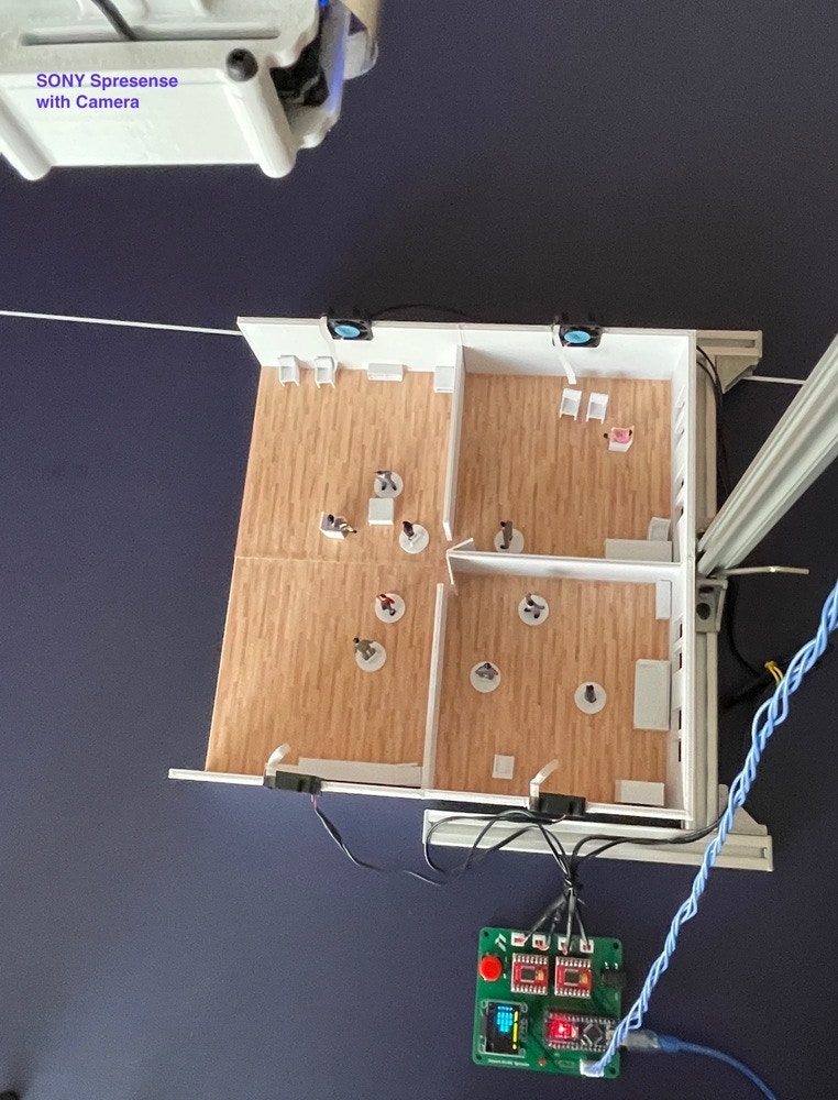 Finally, we have successfully implemented this object detection model on an Sony Spresense, and use the data captured from the camera to automatically control the HVAC system’s fan power intensity and display the occupancy number and power meter for each zone. I believe this Proof of Concept project can be implemented in a real-world HVAC system, so that the goal of optimizing room temperature and saving energy can be achieved for a better, more sustainable future.Resources
