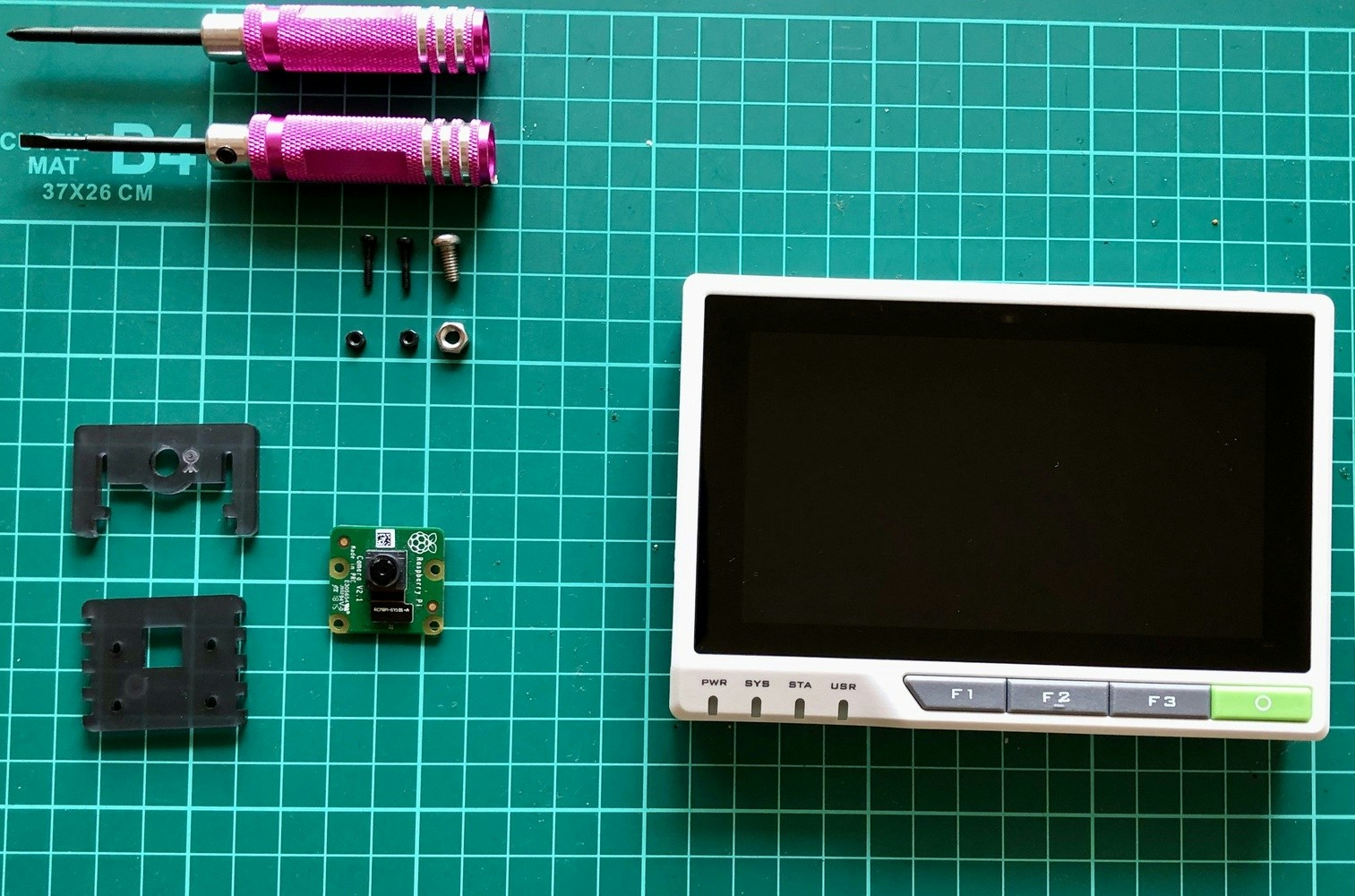 Since I wanted a compact and portable hardware setup, we will be using Seeed reTerminal which comes with an LCD and buttons in a compact form. It is powered by a Raspberry Pi 4 Compute Module with 4 GB RAM which would be sufficient for this proof-of-concept project. We would need Raspberry Pi Camera V2 and an acrylic mount for it.