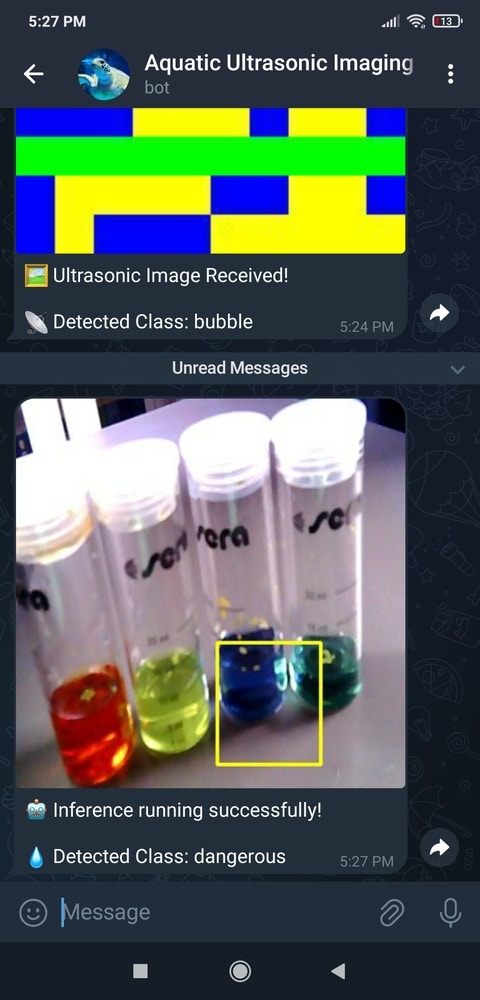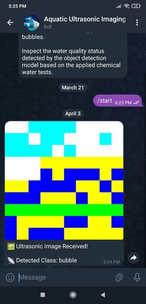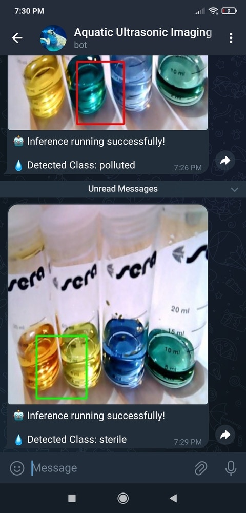 Step 15: Running the RetinaNet model to assess water pollution levels and inform the user via Telegram