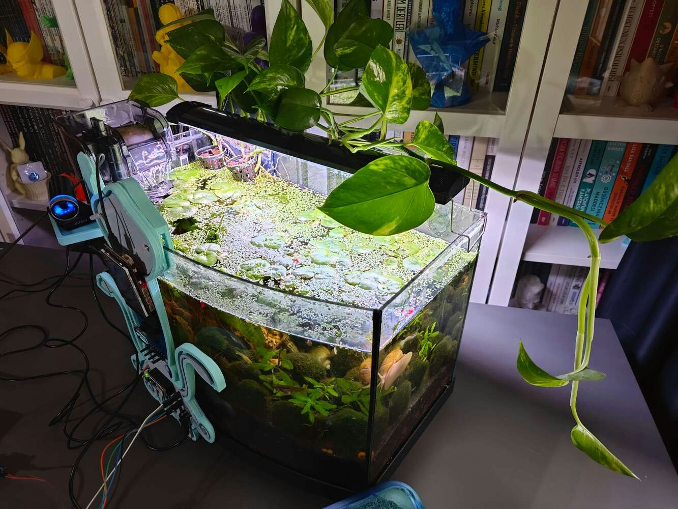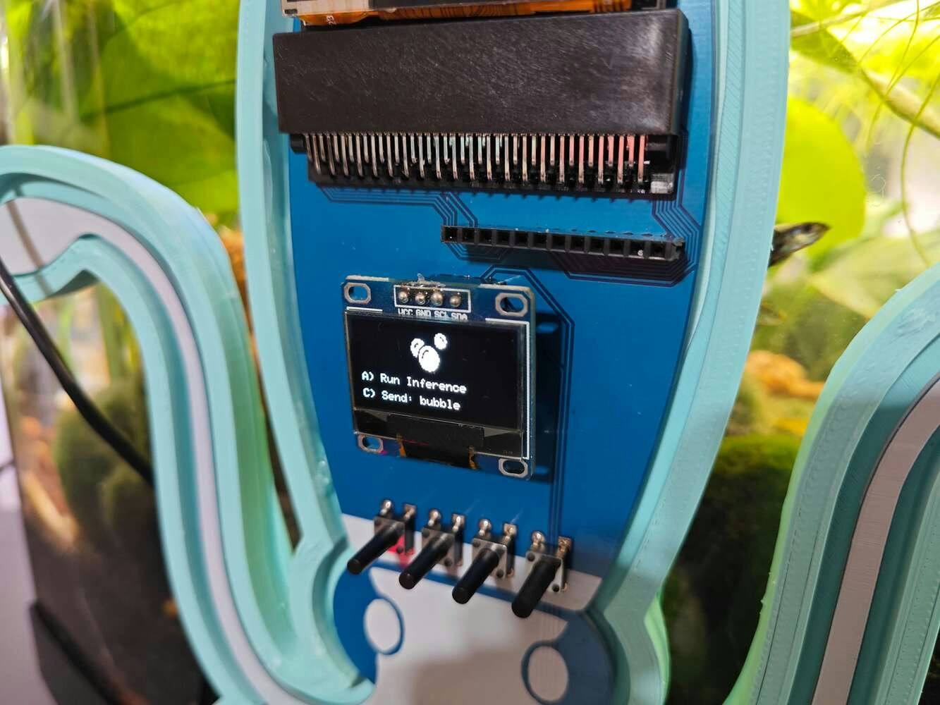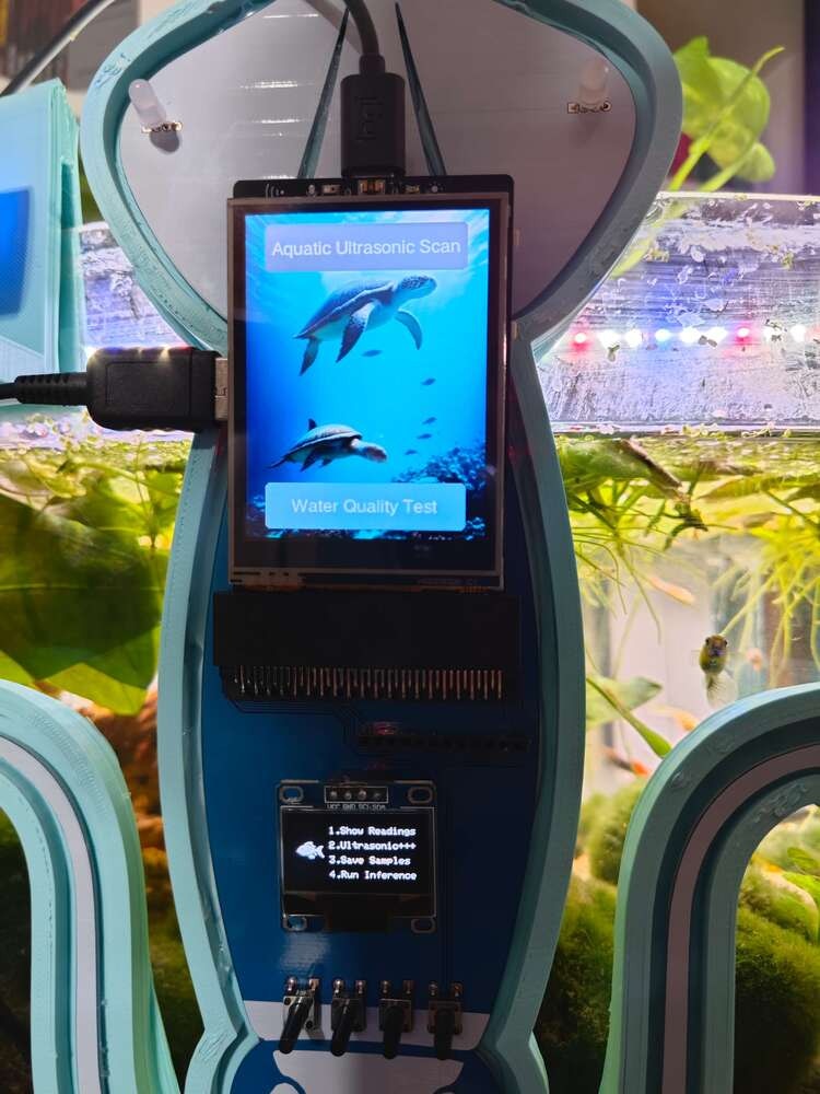 Even though most of us consider water contamination as a gradual occurrence, especially for thriving landscapes, impending pollution can pervade water bodies instantaneously. In the case of enclosed water bodies such as closed lakes, pernicious contaminants can arise in a week and threaten aquatic environments despite not manifesting any indications. These furtively spreading pollutants can even impinge on the health of terrestrial animals by not only poisoning precious water sources but also withering aquatic plants. In most cases, conducting only surface-level water quality tests is insufficient to pinpoint the hiding pollutants since contaminants can form in the underwater substrate by the accumulation of the incipient chemical agents. These underwater chemical reactions are commonly instigated by detritus, industrial effluents, and toxic sediment rife in the underwater substrate. After the culmination of the sinking debris, these reactions can engender algal blooms, hypoxia (dead zones), and expanding barren lands[^1]. Since the mentioned occurrences are only the result of prolonged water pollution, they lead to the inexorable progress of complex toxic chemical interactions, even with plastic debris[^2]. Therefore, the precedence must be given to identifying the underlying conditions of increasing underwater chemical reactions. Especially in lower substrate levels, before reaching hazardous amounts, the combined chemical reactions between pollutants yield ample gas molecules enough to accumulate small-to-moderate air bubbles underwater. These lurking gas pockets affect aquatic plant root systems, deliver noxious contaminants to the surface level, and alter water quality unpredictably due to prevalent emerging contaminants. As a result of the surge of toxic air gaps, the affected water body can undergo sporadic aquatic life declines, starting with invertebrate and fry (or hatchling) deaths. Although not all instances of underwater air bubble activity can be singled out as an imminent toxic pollution risk, they can be utilized as a vital indicator to test water quality to preclude any potential environmental hazards. In addition to protecting natural enclosed water bodies, detecting the accumulating underwater pollutants can also be beneficial and profitable for commercial aquatic animal breeding or plant harvesting, widely known as aquaculture. Since aquaculture requires the controlled cultivation of aquatic organisms in artificially enclosed water bodies (freshwater or brackish water), such as fish ponds and aquariums, the inflation of underwater air bubbles transferring noxious pollutants to the surface can engender sudden animal deaths, wilting aquatic plants, and devastating financial losses. Especially for fish farming or pisciculture involving more demanding species, the accumulating air bubbles in the underwater substrate can initiate a chain reaction resulting in the loss of all fish acclimatized to the enclosed water body. In severe cases, this can lead to algae-clad artificial environments threatening terrestrial animals and the incessant decline in survival rates. After perusing recent research papers on identifying air bubbles in the underwater substrate, I noticed that there are no practical applications focusing on detecting underwater air bubbles and assessing water pollution consecutively so as to diagnose potential toxic contaminants before instigating detrimental effects on the natural environment or a commercial fish farm. Therefore, I decided to develop a feature-rich AIoT device to identify underwater air bubbles via a neural network model by applying ultrasonic imaging as a nondestructive inspection method and to assess water pollution consecutively based on multiple chemical water quality tests via an object detection model. In addition to AI-powered functions, I also decided to build capable user interfaces and a push notification service via Telegram. Before working on data collection procedures and model training, I thoroughly searched for a natural or artificial environment demonstrating the ebb and flow of underwater substrate toxicity due to overpopulation and decaying detritus. Nevertheless, I could not find a suitable option near my hometown because of endangered aquatic life, unrelenting habitat destruction, and disposal of chemical waste mostly caused by human-led activities. Thus, I decided to set up an artificial aquatic environment simulating noxious air bubbles in the underwater substrate and potential water pollution risk. After conducting a meticulous analysis of fecund aquatic life with which I can replicate fish farm conditions in a medium-sized aquarium, I decided to set up a planted freshwater aquarium for harmonious and proliferating species — livebearers (guppies), Neocaridina shrimp, dwarf (or least) crayfish (Cambarellus Diminutus), etc. In the following steps, I shall explain all species in my controlled environment (aquarium) with detailed instructions. Since the crux of identifying underwater air bubbles and assessing water pollution simultaneously requires developing an AI-driven device supporting multiple machine learning models, I decided to construct two different data sets — ultrasonic scan data (buffer) and chemical water quality test result (color-coded) images, build two different machine learning models — neural network and object detection, and run the trained models on separate development boards. In this regard, I was able to program distinct and feature-rich user interfaces for each development board, focusing on a different aspect of the complex AI-based detection process, and thus avoid memory allocation issues, latency, reduced model accuracy, and intricate data collection methods due to multi-sensor conflict. Since Nano ESP32 is a brand-new and high-performance Arduino IoT development board providing a u-blox® NORA-W106 (ESP32-S3) module, 16 MB (128 Mbit) Flash, and an embedded antenna, I decided to utilize Nano
