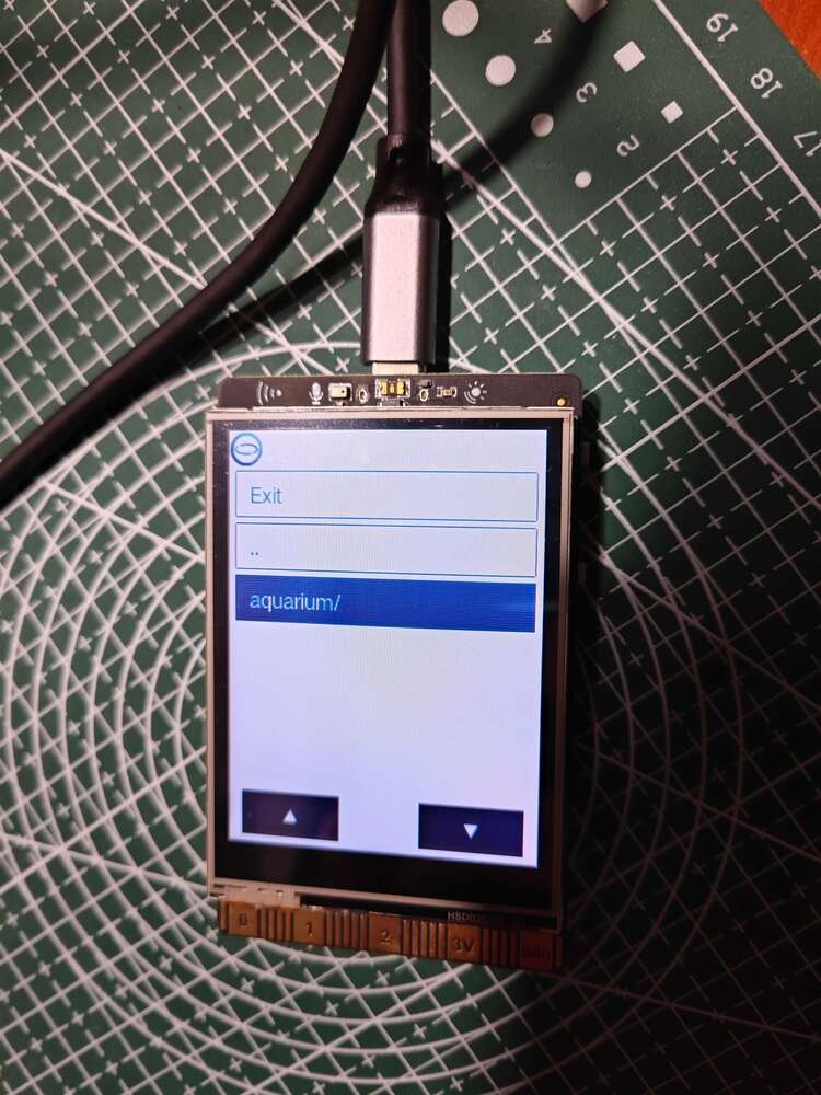 Since the captured camera frame size is not compatible with the object detection model, I utilized the built-in OpenCV features to resize the captured frame according to the required dimensions for both the model and the user interface (snapshot). After executing the main.py file on UNIHIKER: 🐠📡💧📊 The device displays the home screen, showing two main sections, on the built-in touchscreen of UNIHIKER.- Aquatic Ultrasonic Scan