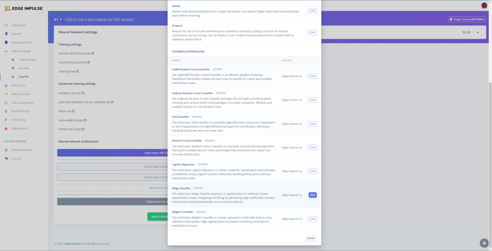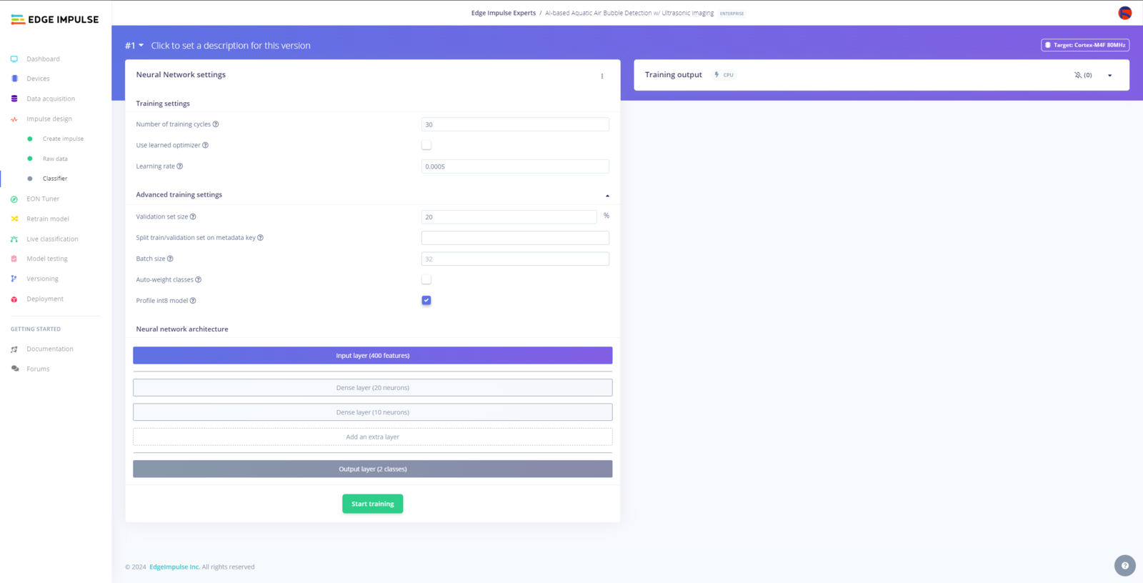 Step 10: Building a neural network model w/ Edge Impulse Enterprise