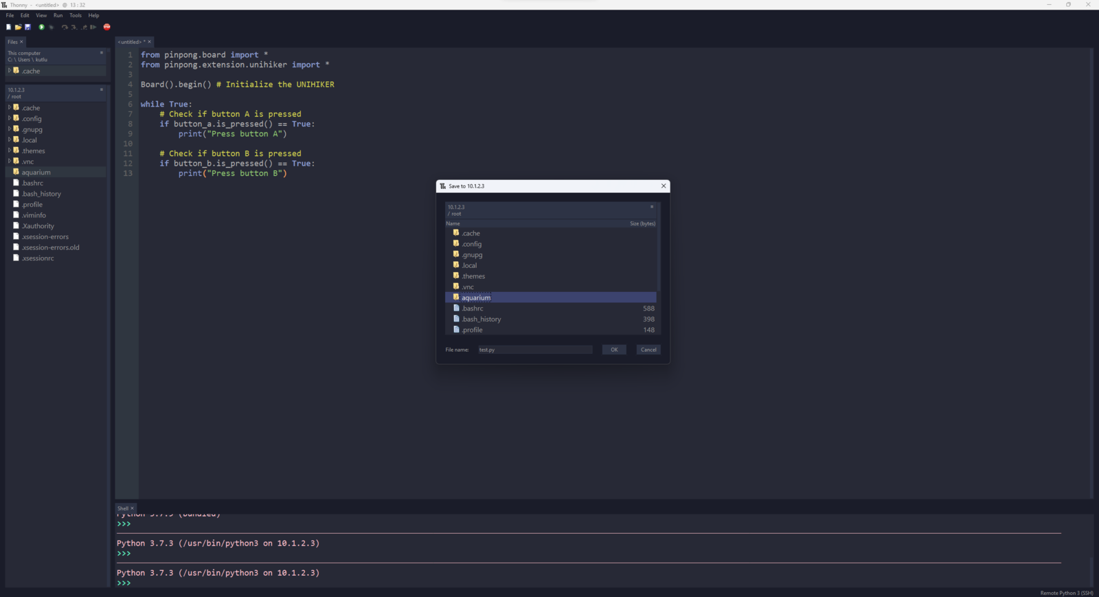 Step 7: Setting up UNIHIKER on MobaXterm & Thonny