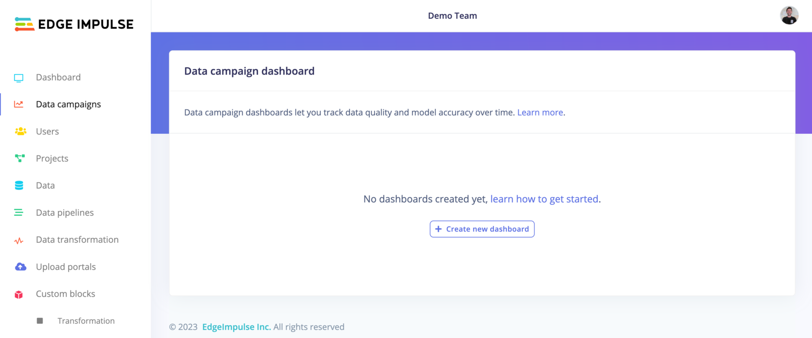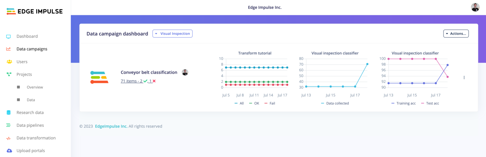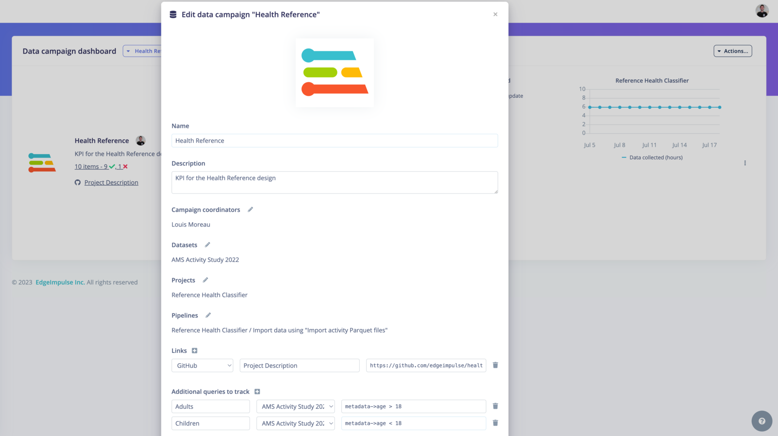 Once your dashboard is created, you can add your custom campaigns. It’s where you will specify which metrics are important to you and your use case. Click on Actions… -> Add campaign