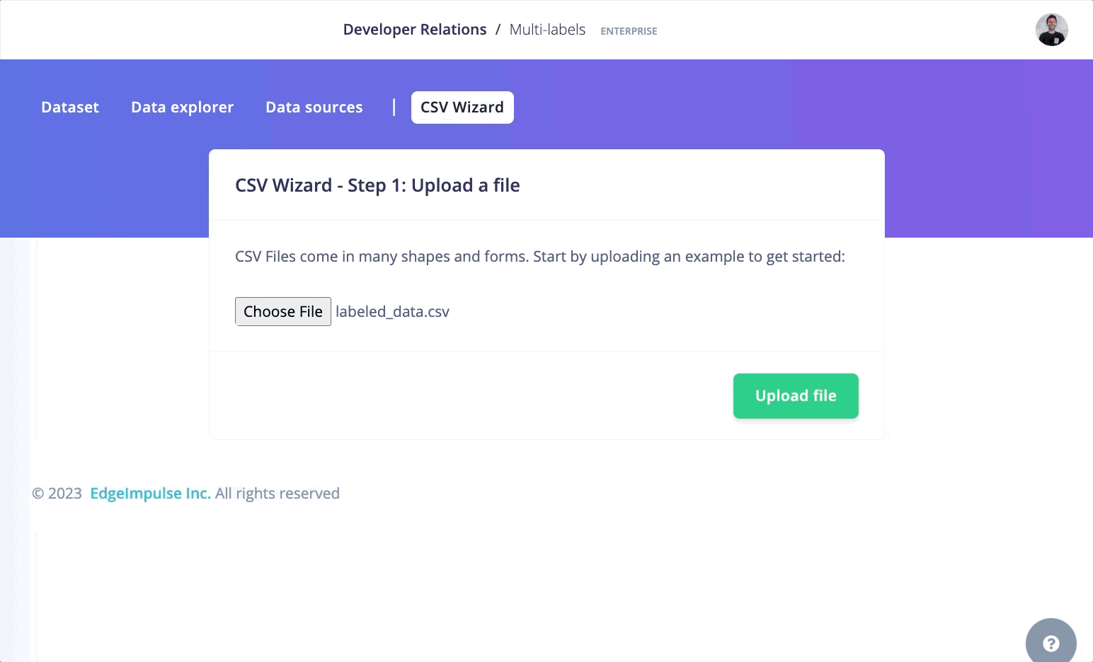 The other way is to create a info.labels file, present in your dataset. Edge Impulse will automatically detect it when you upload your dataset and will use this file to set the labels.