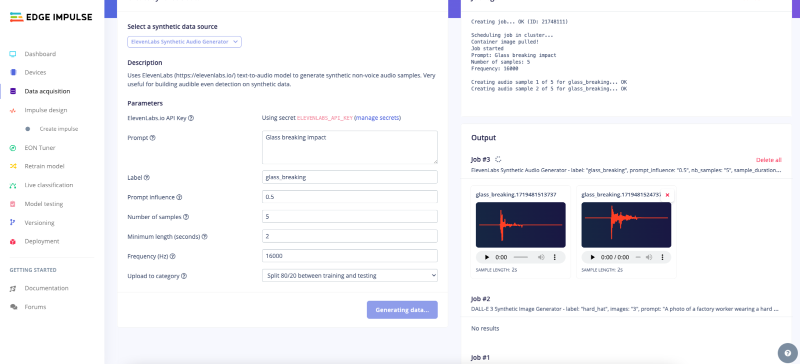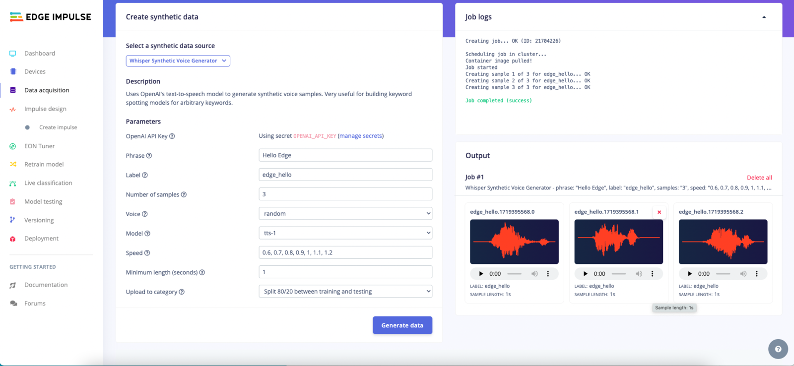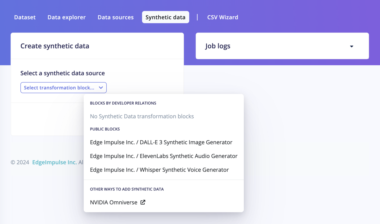 To access the Synthetic data, follow these steps:- Navigate to Your Project: Open your project in Edge Impulse Studio.
