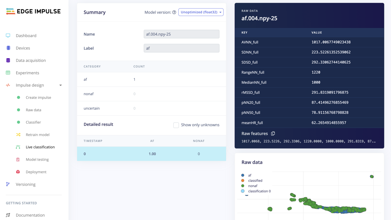 In the Live classification tab, you can classify your tabular/pre-processed test samples: