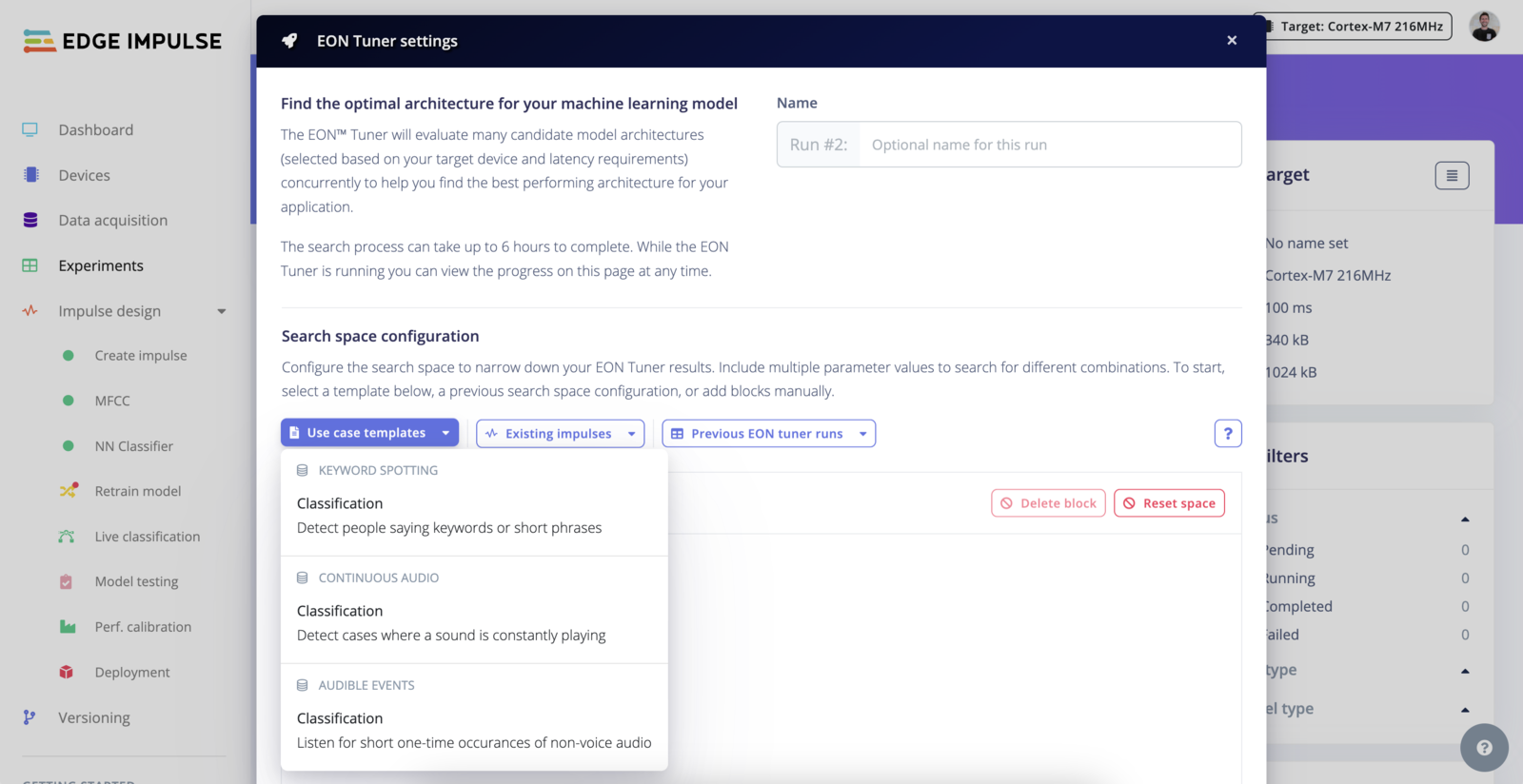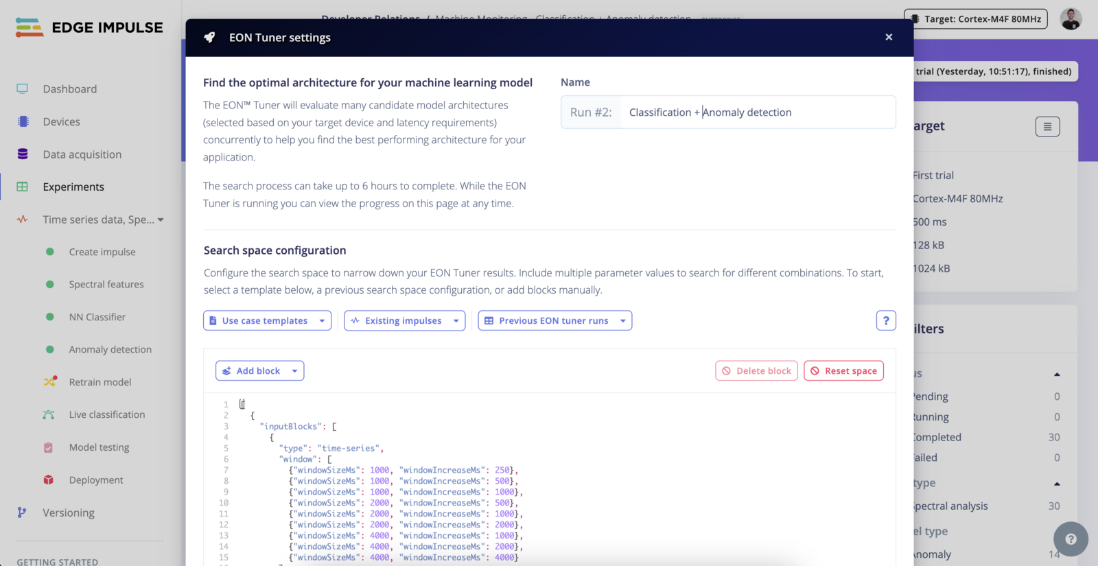 The EON Tuner Search Space allows you to define the structure and constraints of your machine learning projects through the use of templates.Templates