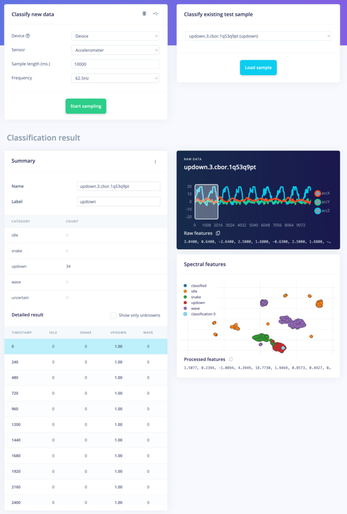 Classification result. Showing the conclusions, the raw data and processed features in one overview.