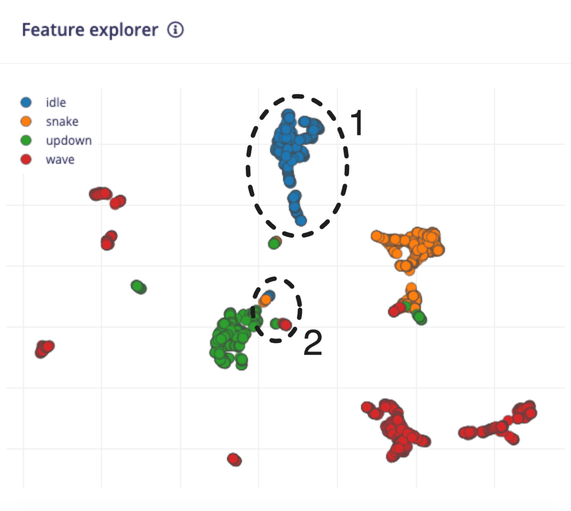- Try different processing parameters. Play with the feature extraction settings in your processing block to see if you can create better groupings.