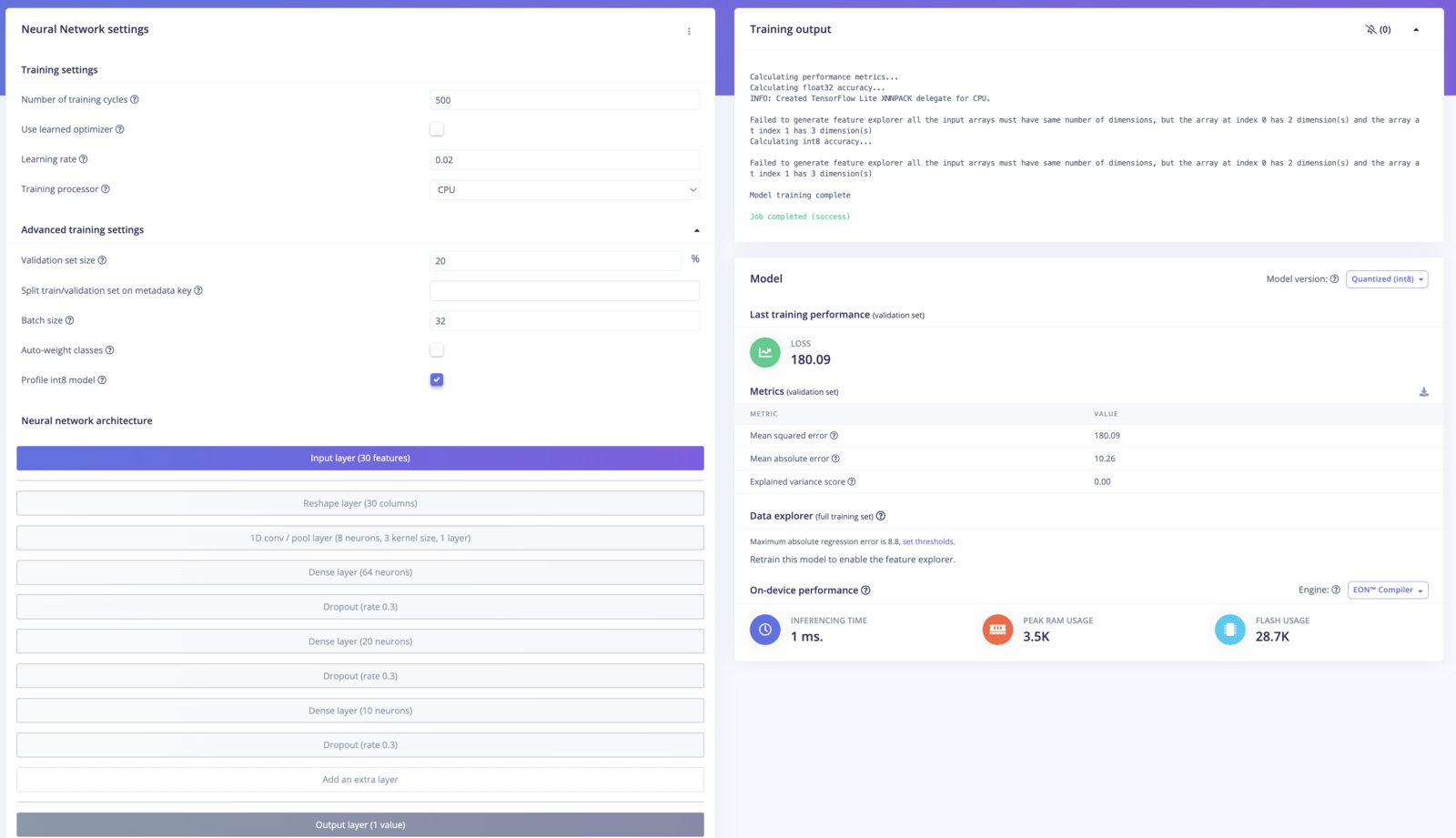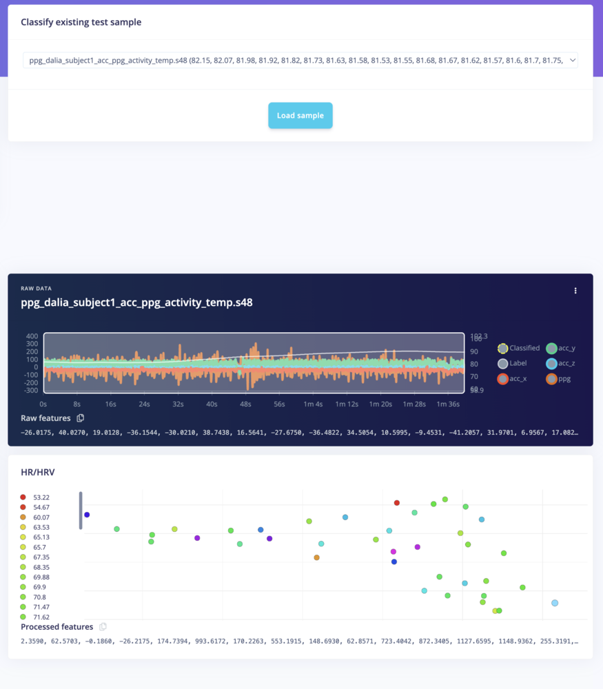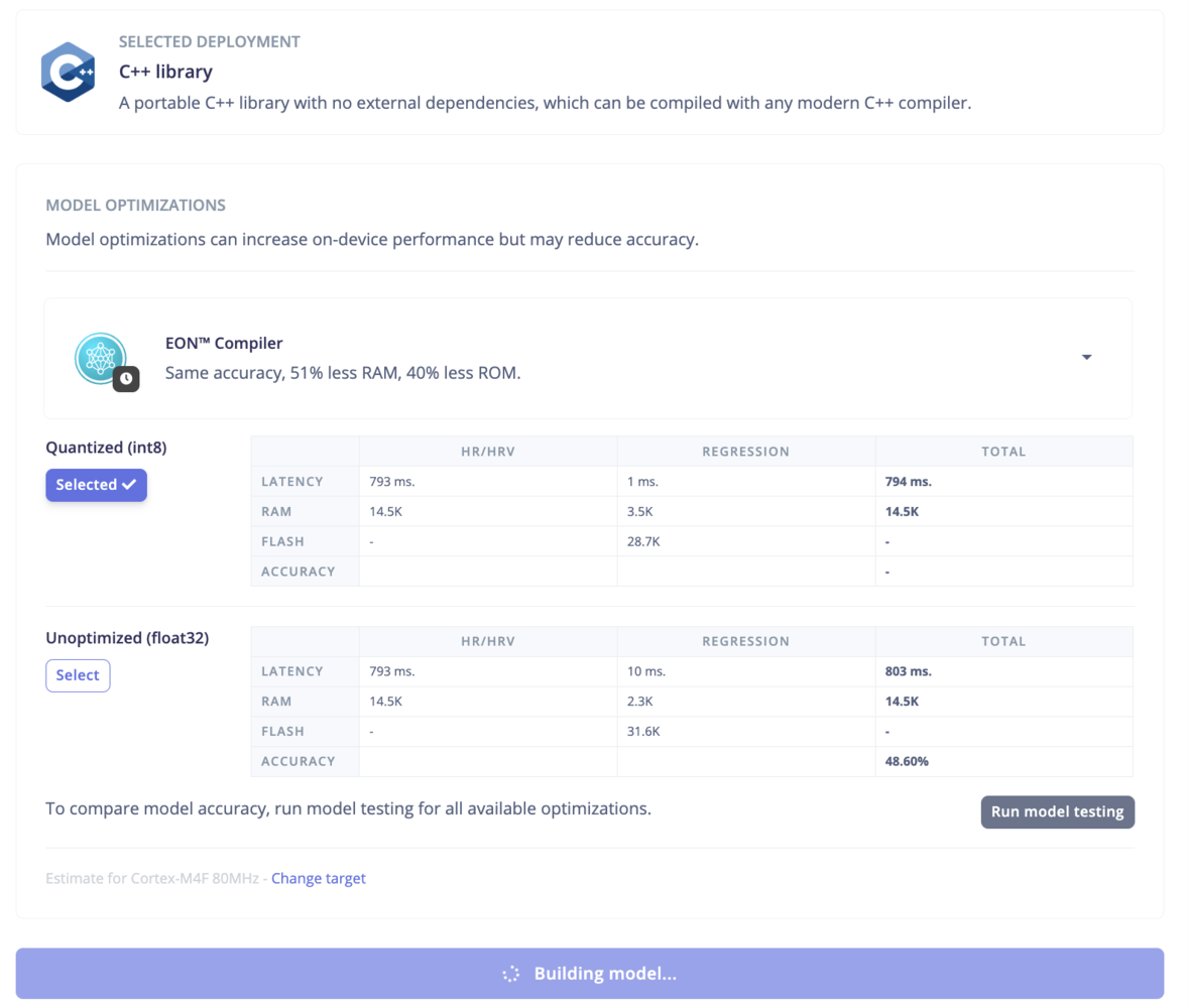 - After training, use Model Testing to evaluate the performance of your HR/HRV feature extraction and heart rate prediction model.