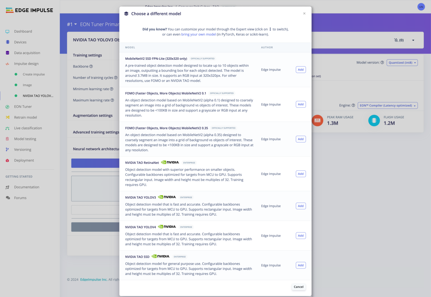 In your Object Detection (Images) or Transfer Learning (Images) view, select your NVIDIA TAO model: