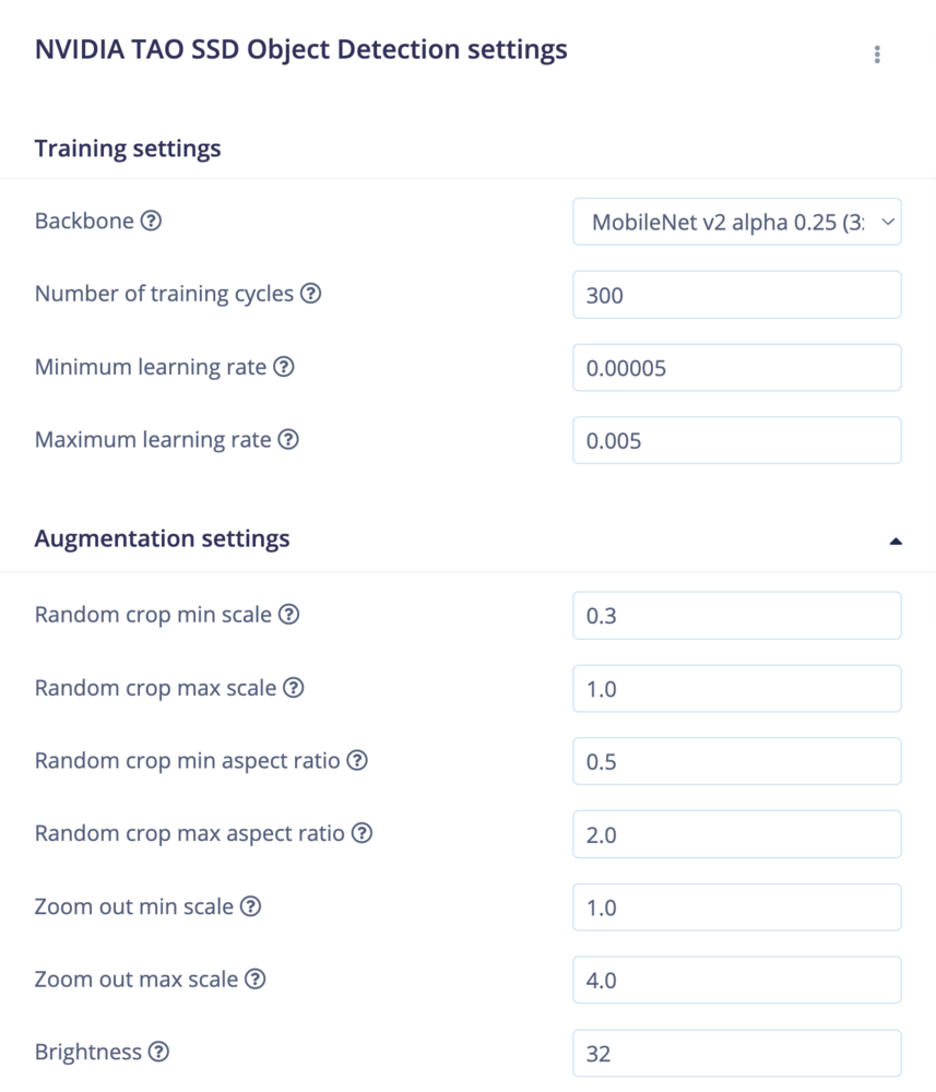 Under NVIDIA TAO…, select between various parameters, in total there are 88 object detection architectures, and 15 image classification architectures.