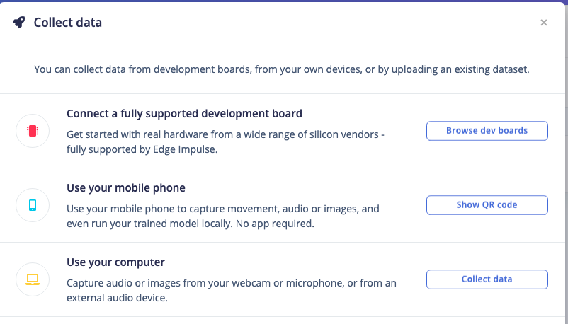 Device compatibilityEdge Impulse can ingest data from any device - including embedded devices that you already have in production. See the documentation for the Ingestion API for more information.