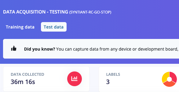 In this tutorial we want to build a system that recognizes keywords that resemble giving commands to a remote control car such as ‘go’ and ‘stop’. Although the aforementioned public project comes pre-loaded with approx. 2.5 hours of training data, in order to add additional audio samples including your own, we’ll show you how you can record audio samples directly from the board.2.1 For the Syntiant TinyML