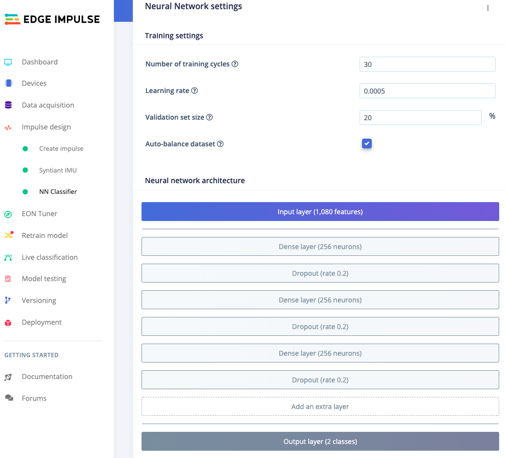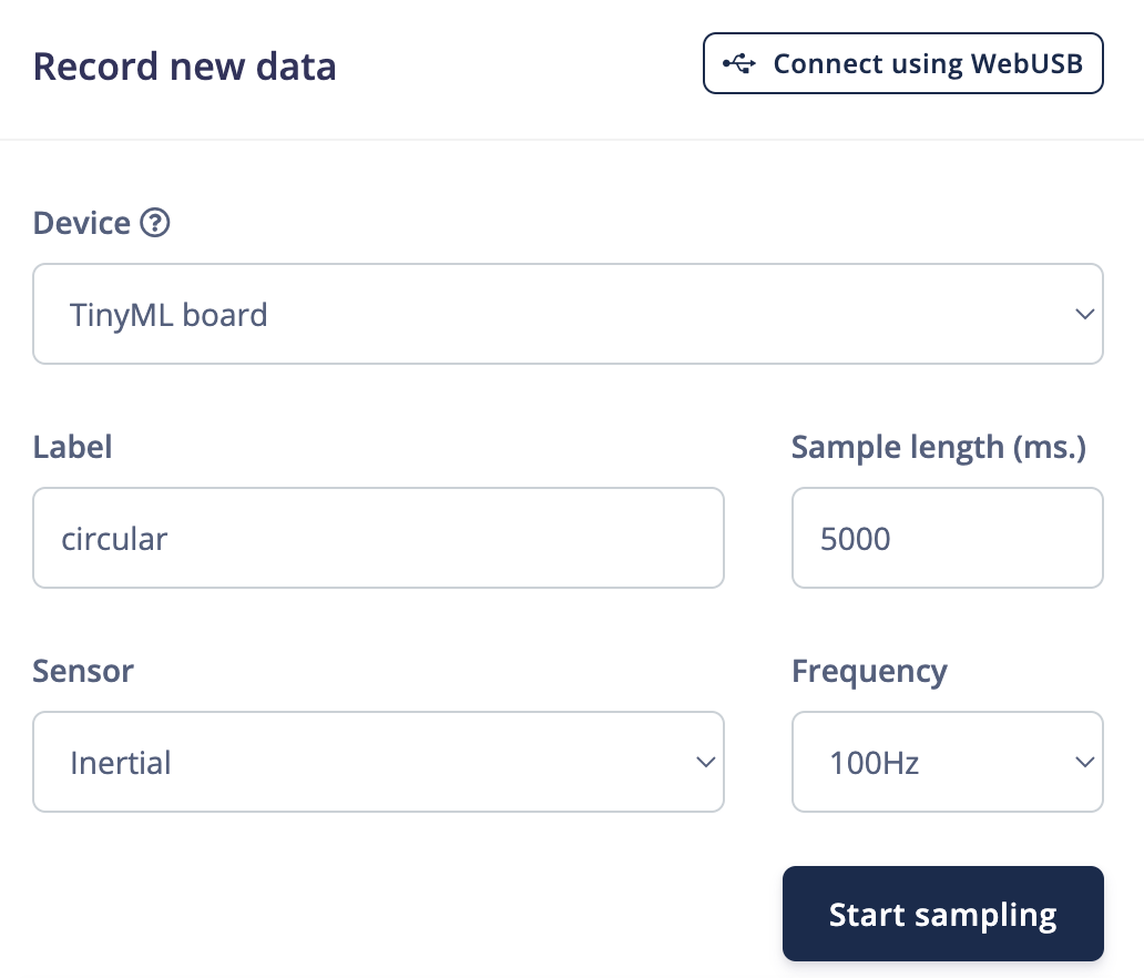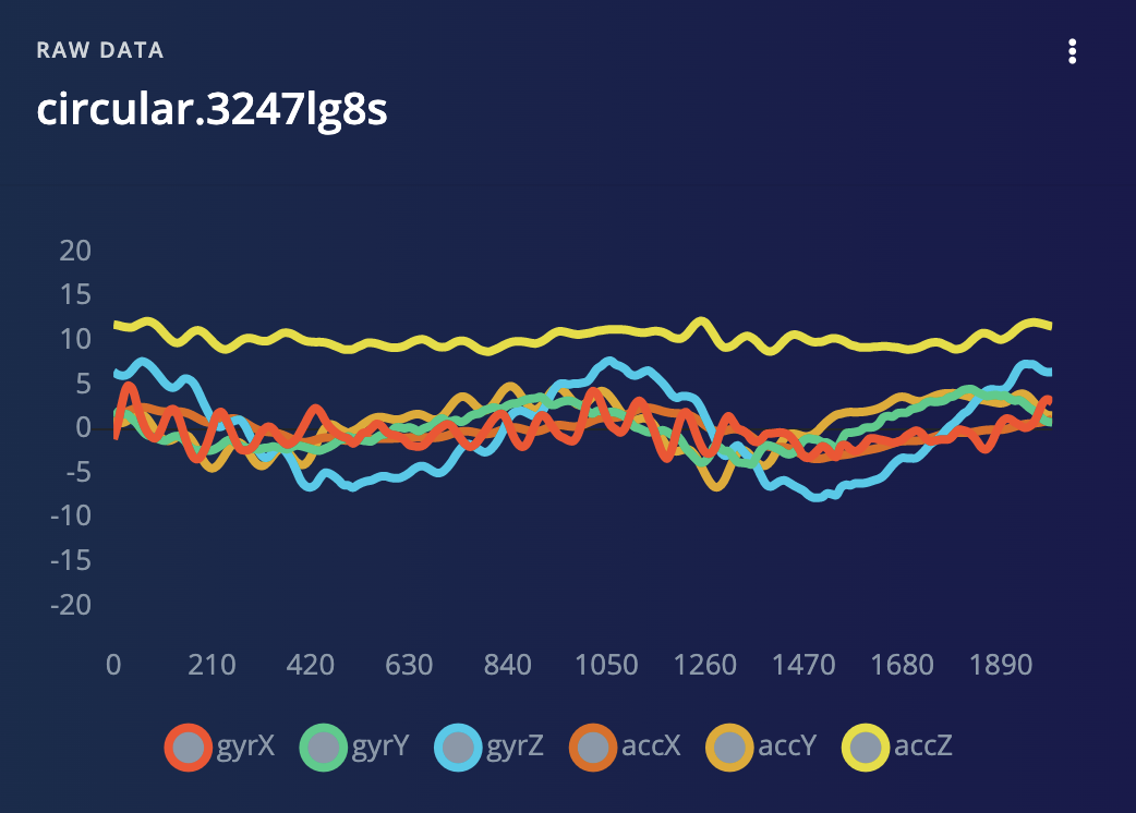 Before starting the tutorialAfter signing up for a free Edge Impulse account, clone the finished project, including all training data, signal processing and machine learning blocks here: Syntiant - Circular Motion. At the end of the process you will have the full project that comes pre-loaded with training and test datasets.