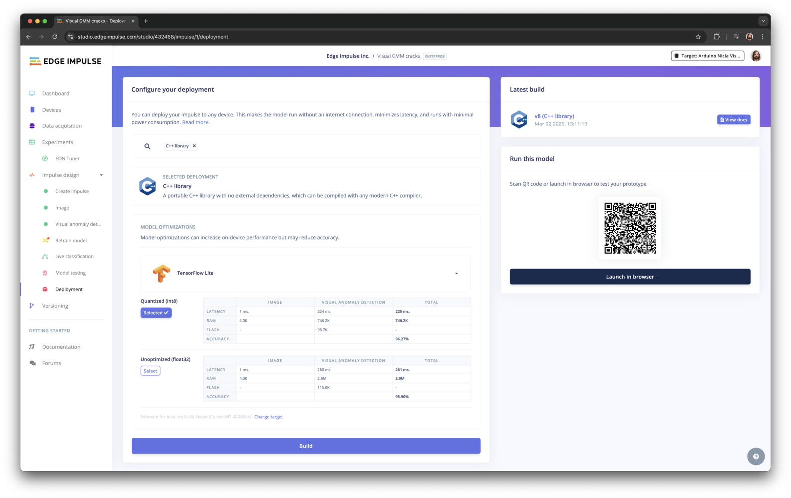 Make sure you have exported your impulse as a C++ library. If you haven’t done this yet, follow the steps in the C++ Library documentation. Ensure that TensorFlow lite is selected, before the C++ library is generated.