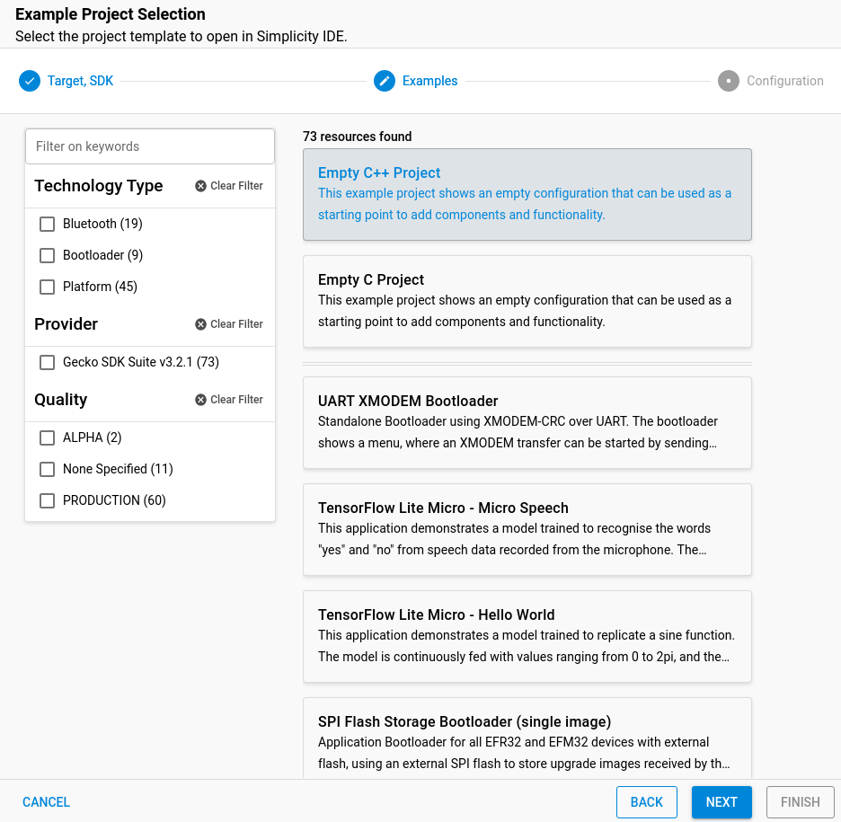 - Create a new project via File > New > Silicon Labs Project Wizard…