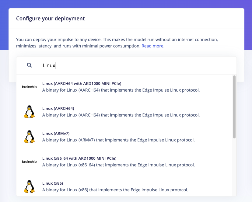 32 for 32 bits or 64 for 64 bits. When you use the runner tool to download an .eim file, it will provide the Edge Impulse servers information about your hardware architecture. If you are using a 64-bit CPU, you will receive an .eim file compiled for 64-bit systems. Such an executable will not run on 32-bit operating systems.