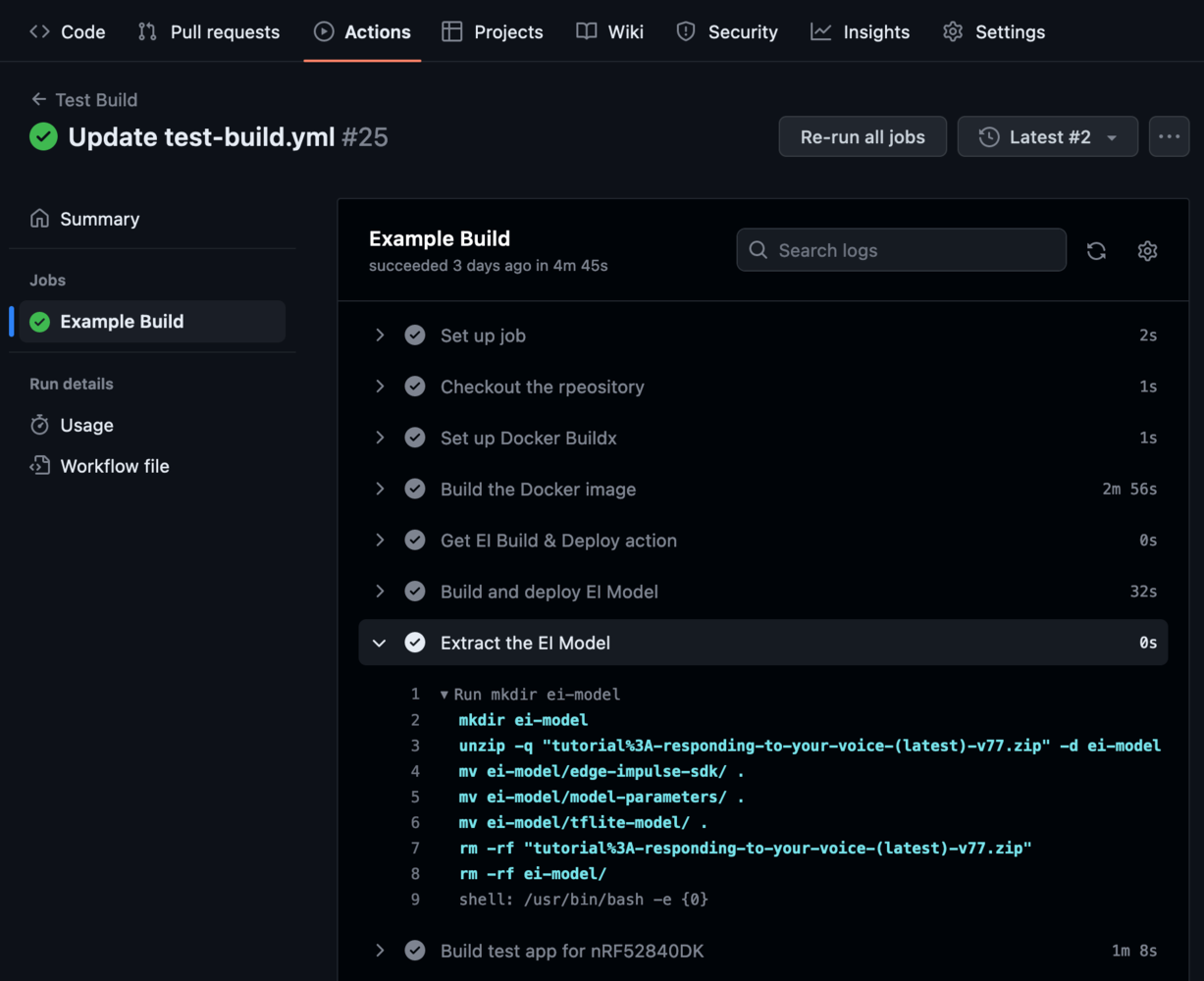 - Here’s an example of using the Action with Nordic Semiconductor/Zephyr inference example: